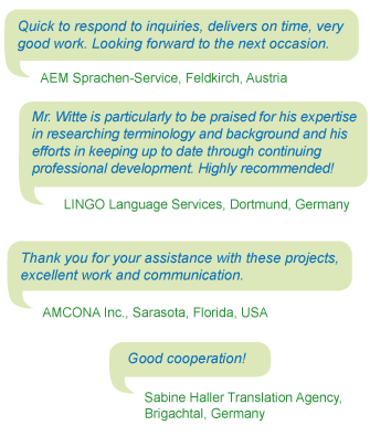 Thrown in as an extra for you, in order to achieve a particularly high technical and stylistic quality, 95% of the German to English translation jobs that we handle involve mutual quality assurance practices (2nd pair of eyes).