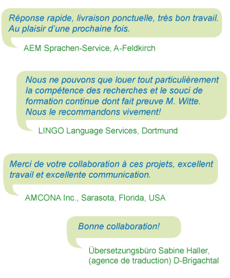 Afin de vous garantir un haut niveau de qualité terminologique et stylistique, nous effectuons 95% de nos traductions de l’allemand vers l’anglais en appliquant le principe des quatre yeux comme suit: